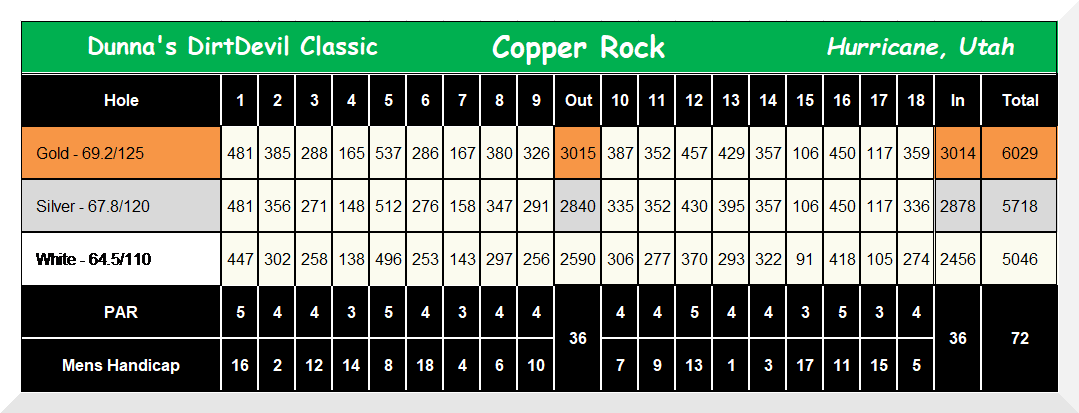 Wednesday, June 4th - 8:00 AM Shotgun Start (Mesquite Time) Copper Rock Golf Course - Hurricane, Utah (Scorecard) -