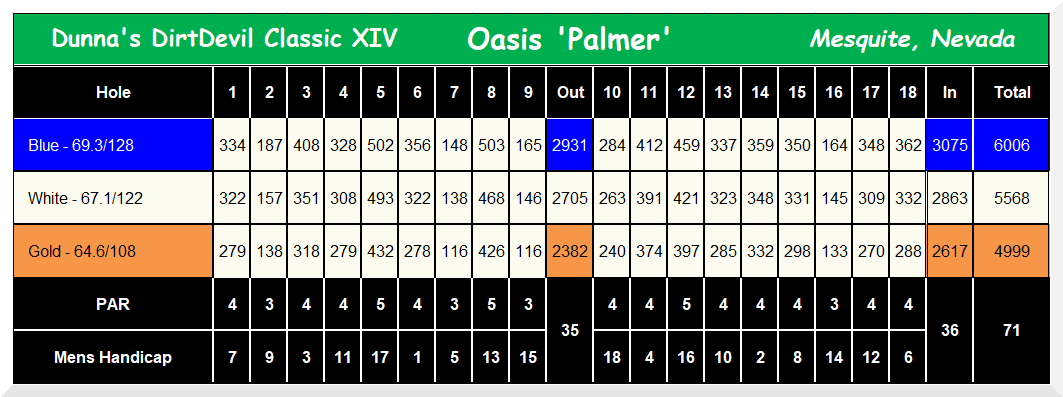 Tuesday, June 3rd - 7:00 AM Shotgun Start Oasis 'Palmer' Golf Course (Scorecard) -