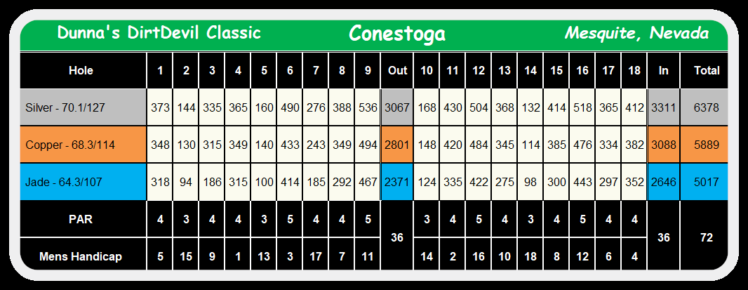Monday, June 5th - 7:00 AM Shotgun Start Oasis 'Canyons' Golf Course (Scorecard) -