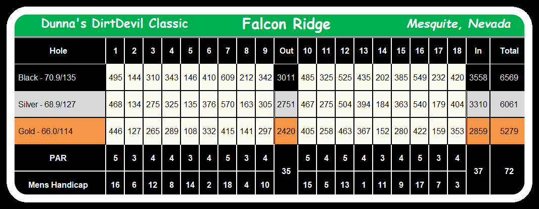 Thursday, June 8th - 7:00 AM Shotgun Start Falcon Ridge Golf Course (Scorecard) -