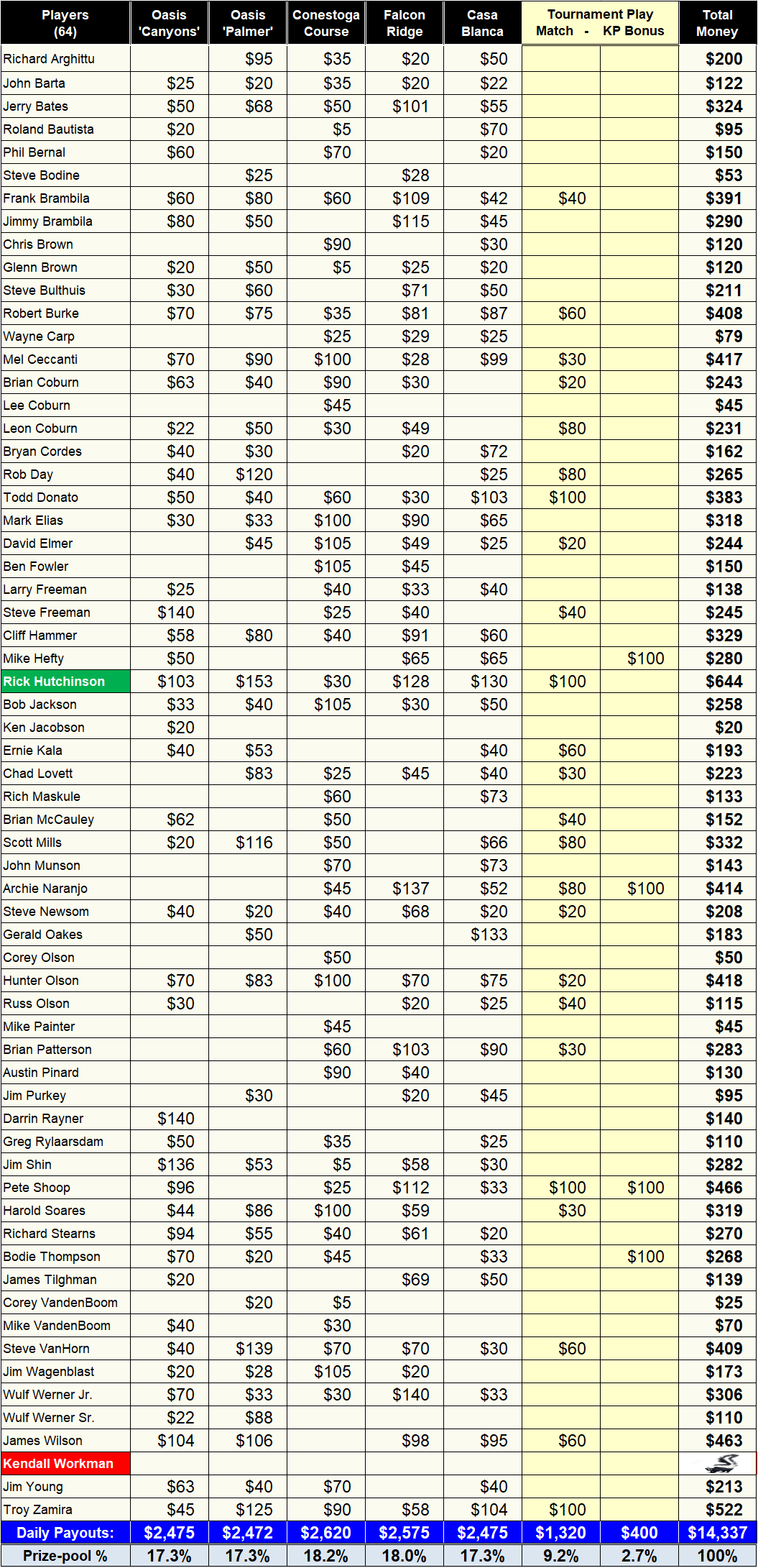 Oasis (Canyons) Daily Winners