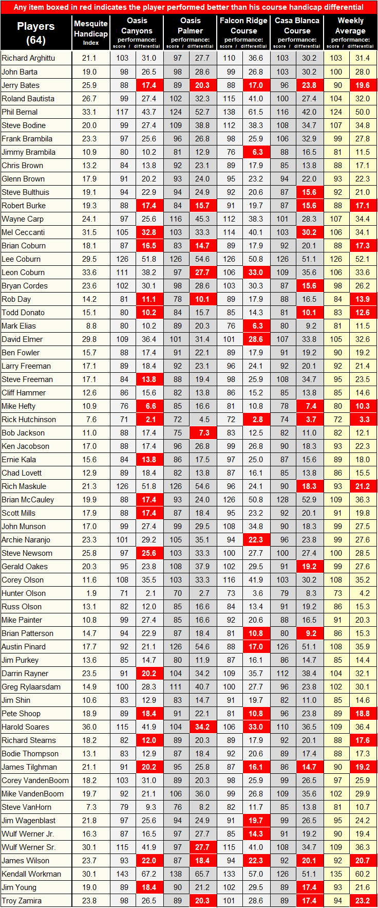 The Mesquite Shamble, 4-Man Team Competition ALL PLAYERS - Copper Tee Box - 5889 yards - 68.3/114