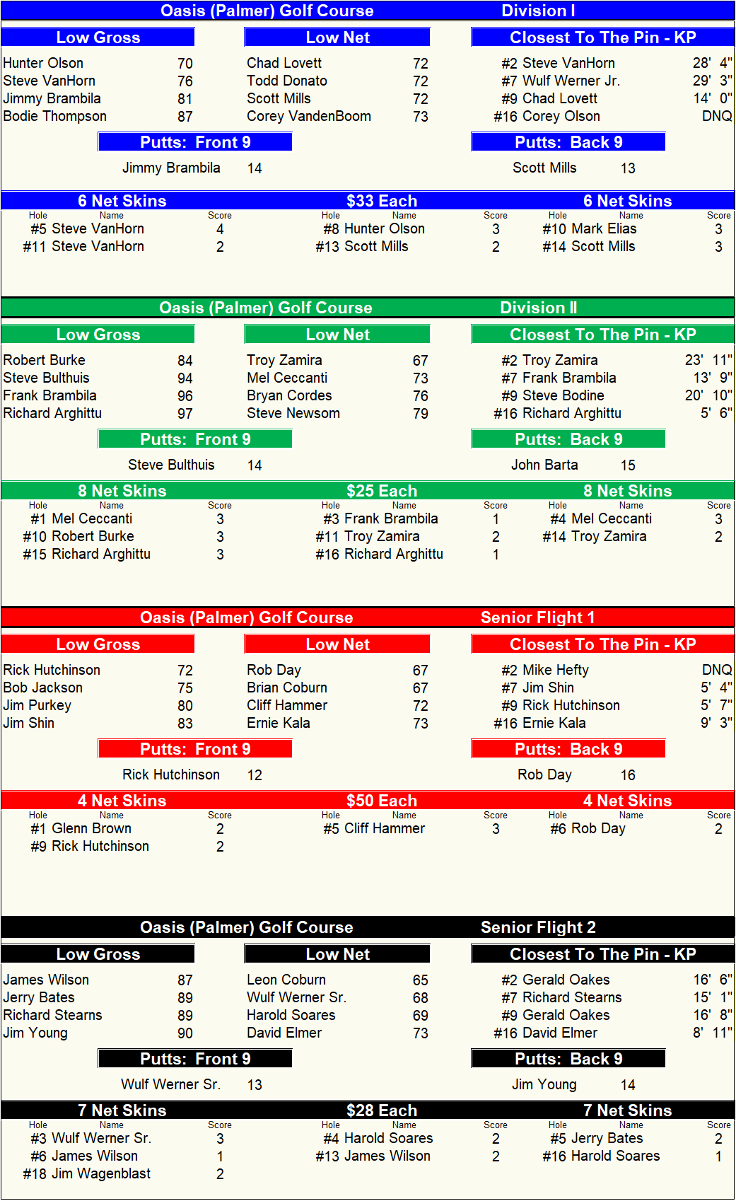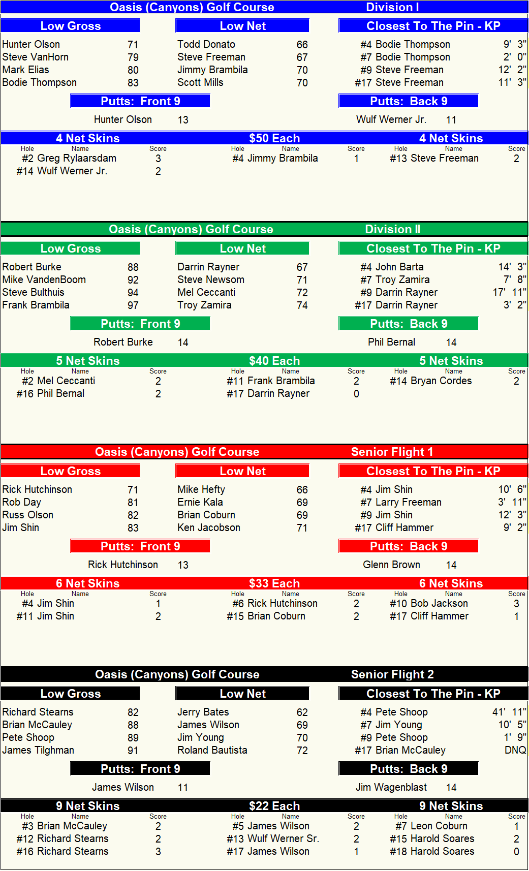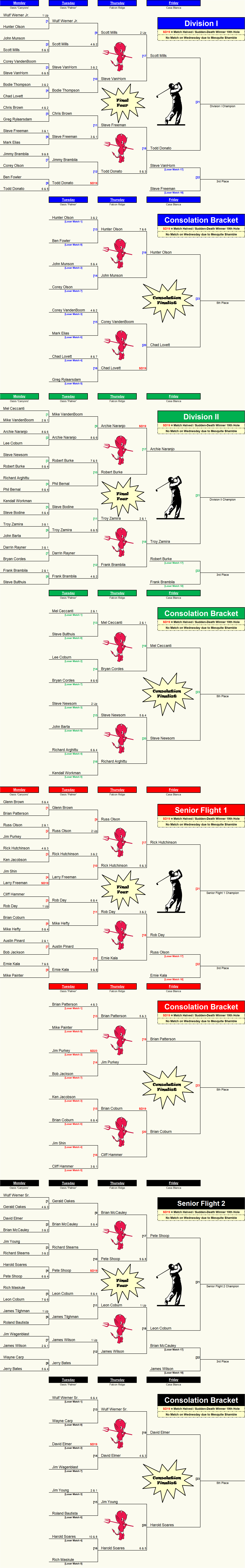 Divisions I & II - Silver Tee Box - 6061 yards - 68.9/127 Senior Flights I & II - Gold Tee Box - 5279 Yards