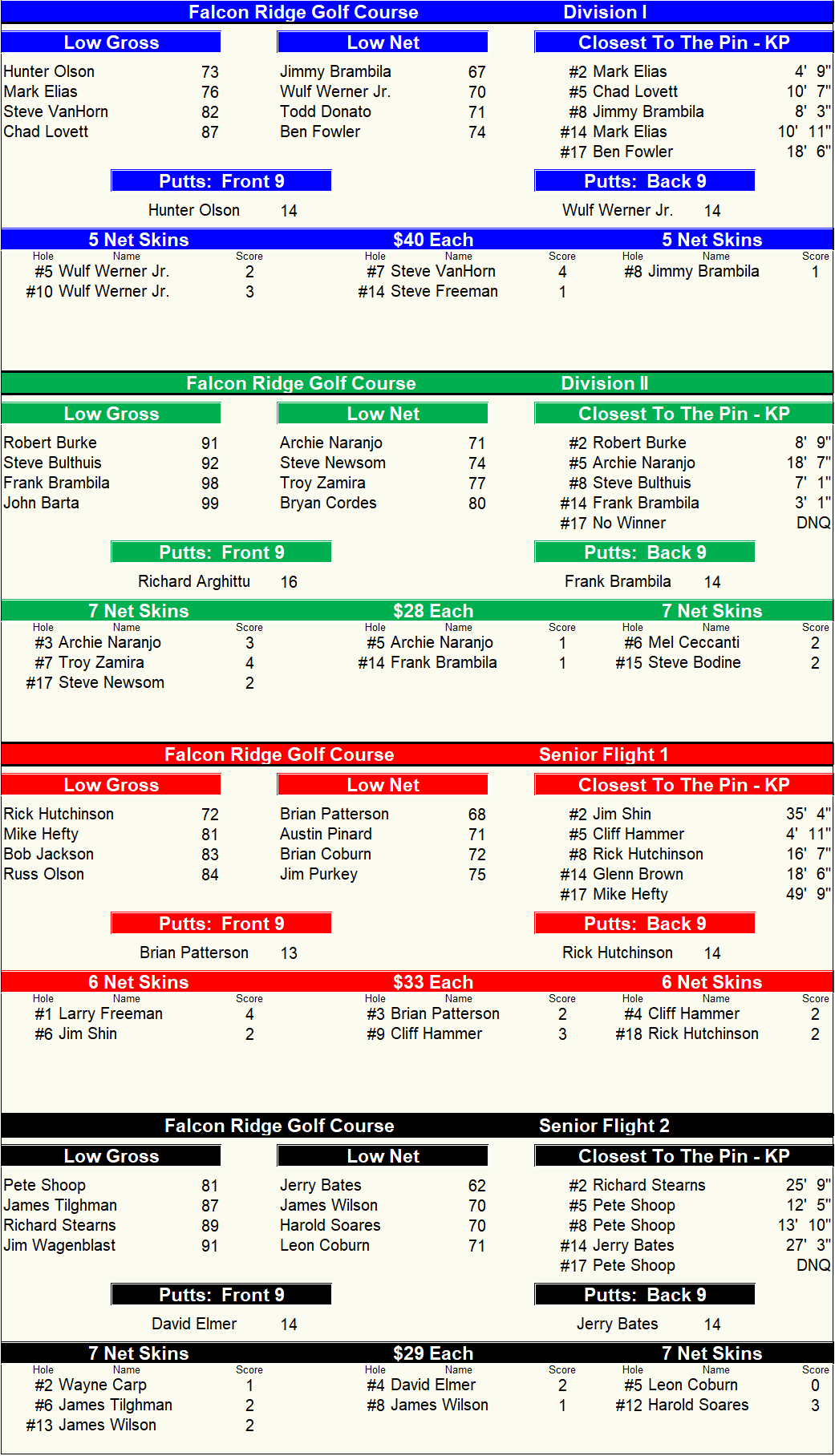 Falcon Ridge Daily Winners